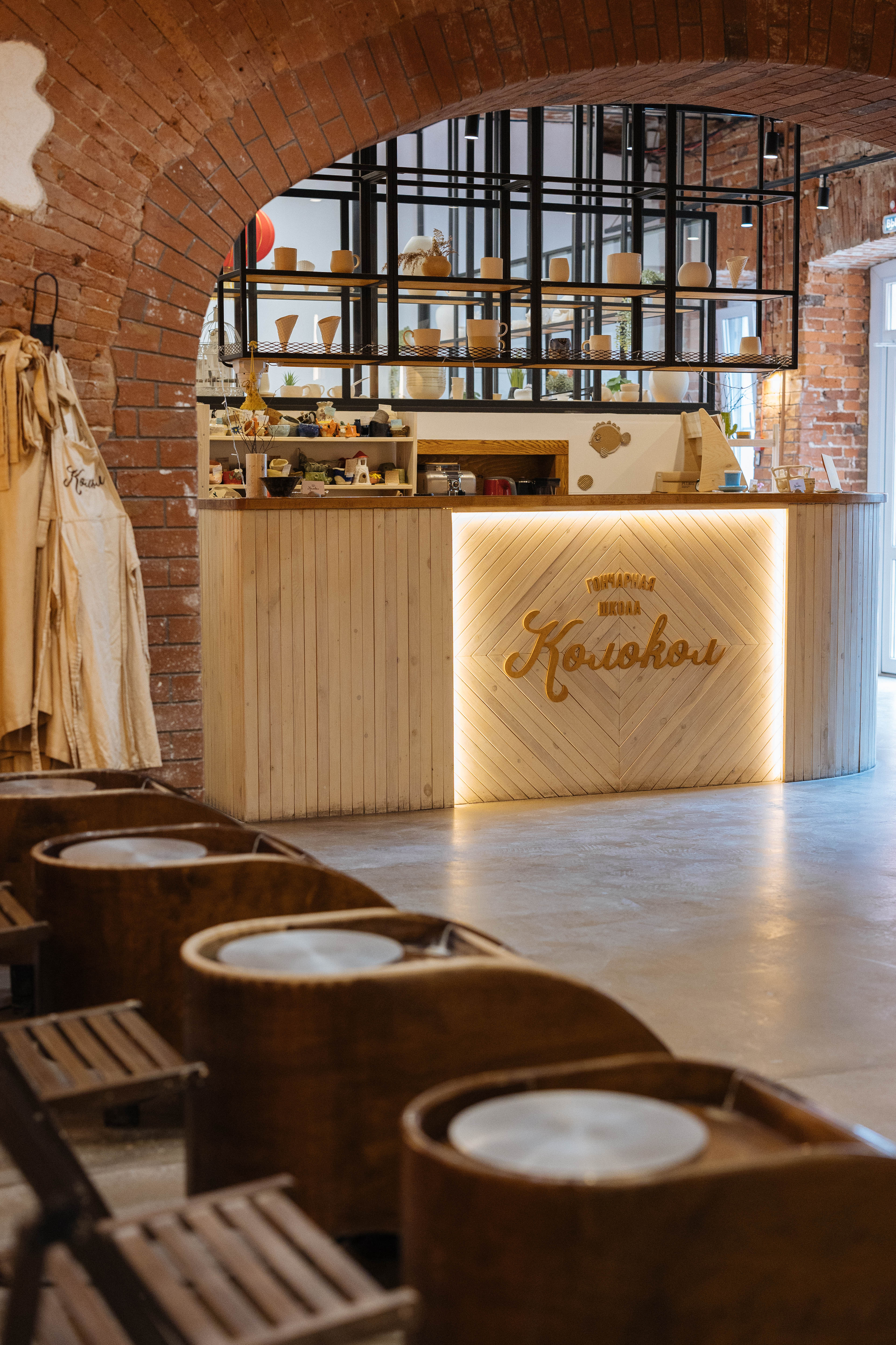 Под одной крышей объединено несколько керамических проектов: гончарная школа Колокол, студия росписи керамики, коворкинг для керамистов, мастерская по изготовлению керамики на заказ и реставрация керамических изделий.