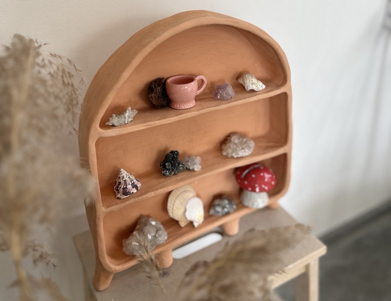 Такая полка точно станет изюминкой вашего дома. В ней можно хранить камни, ракушки, кристаллы, привезенные вами из особенных мест. Сухоцветы в изящных маленьких вазочках. Свечи. Косметику. Благовония. Книги. Фотографии. Открытки. И многое другое, что греет вашу душу приятными воспоминаниями и отражает вас.